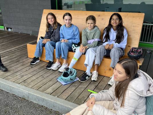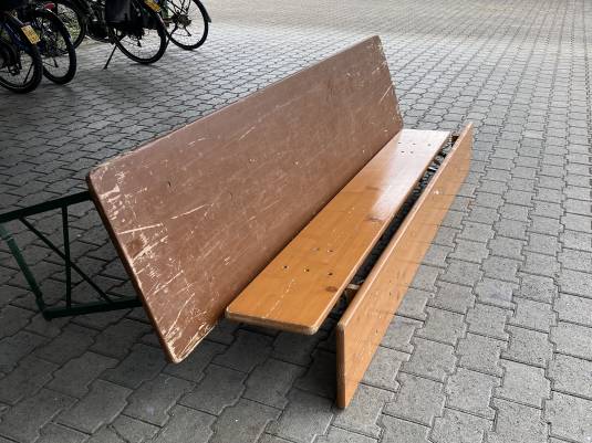 Was ist das? Eine Festbankgarnitur, welche nicht benutzt werden darf? Nein, eine kreative Umgestaltung der Schüler:innen zur angepassten Nutzung. Die ursprünglich als Aussenarbeitsplätze gedachten Festbankgarnituren wurden in Eigenregie zu gemütlicheren Lounges umgebaut.