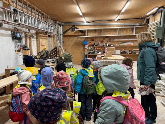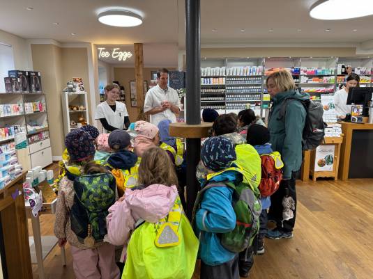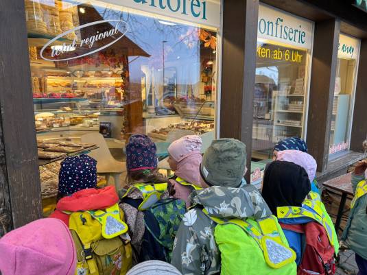 Ende Oktober haben die Kinder und Lehrpersonen des Kindergartens Römerweg einen Rundgang durch den oberen Teil des Dorfes gemacht, um passend zum Jahresthema die dort ansässigen Berufe kennenzulernen.