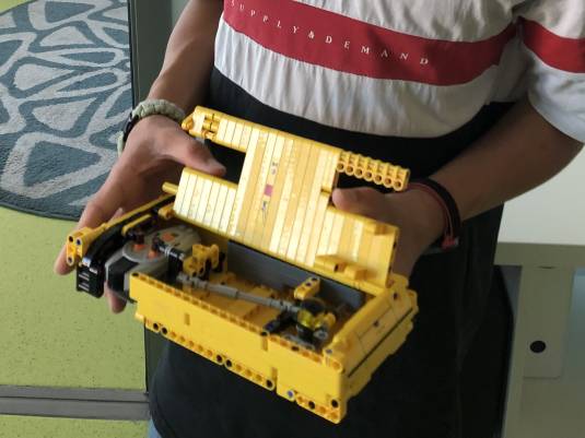 Ich habe zum Beispiel ein großes Auto gebaut, das sehr stabil ist, Licht hat und eine Ladefläche besitzt, die man hochklappen kann. Außerdem kann man die Batterie ganz einfach herausnehmen. Die Fernbedienung ist genau so groß wie eine Nintendo Switch, und man steuert das Auto ähnlich wie in Lego City Undercover.