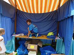 Alle Kinder befinden sich ausserhalb ihrer Darbietungen oder Arbeitseinsätze in der Obhut ihrer Eltern.